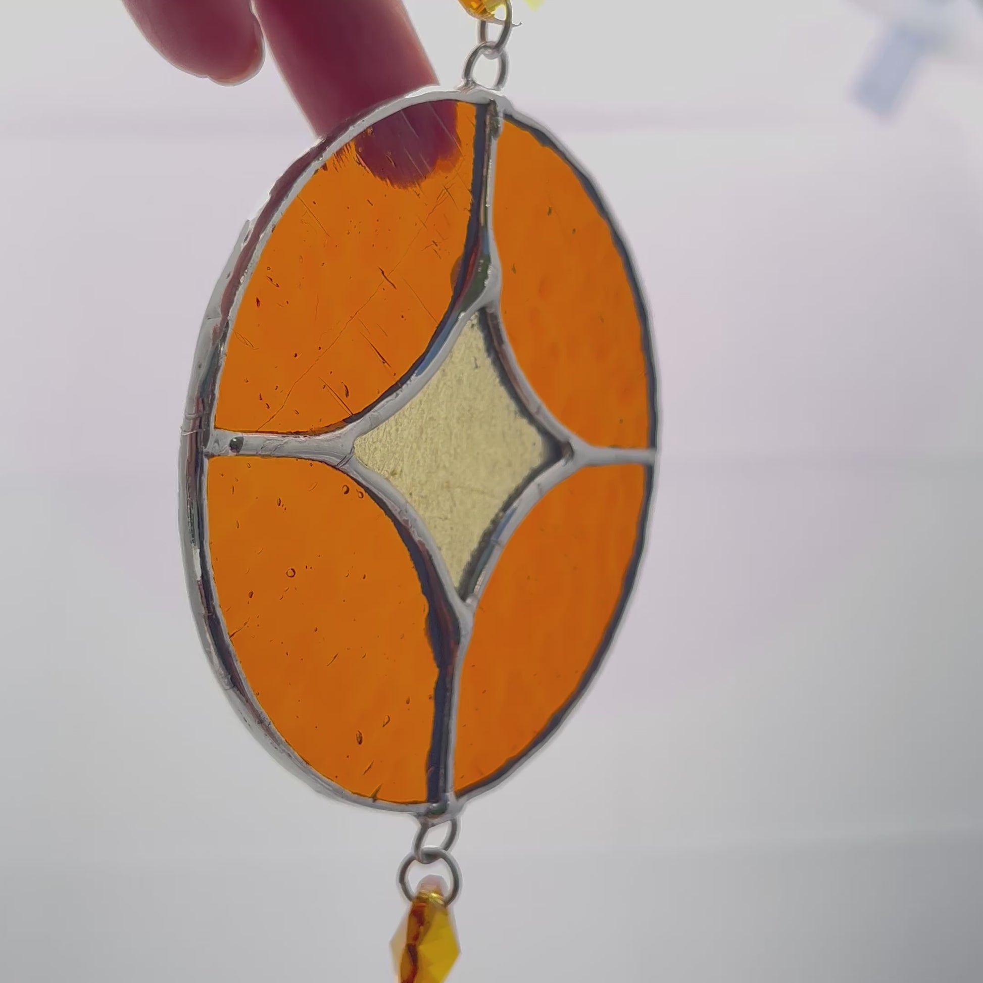 *This piece is made with lead-free solder and is safe to handle. Please see glass care page for hanging, handling and cleaning instructions.